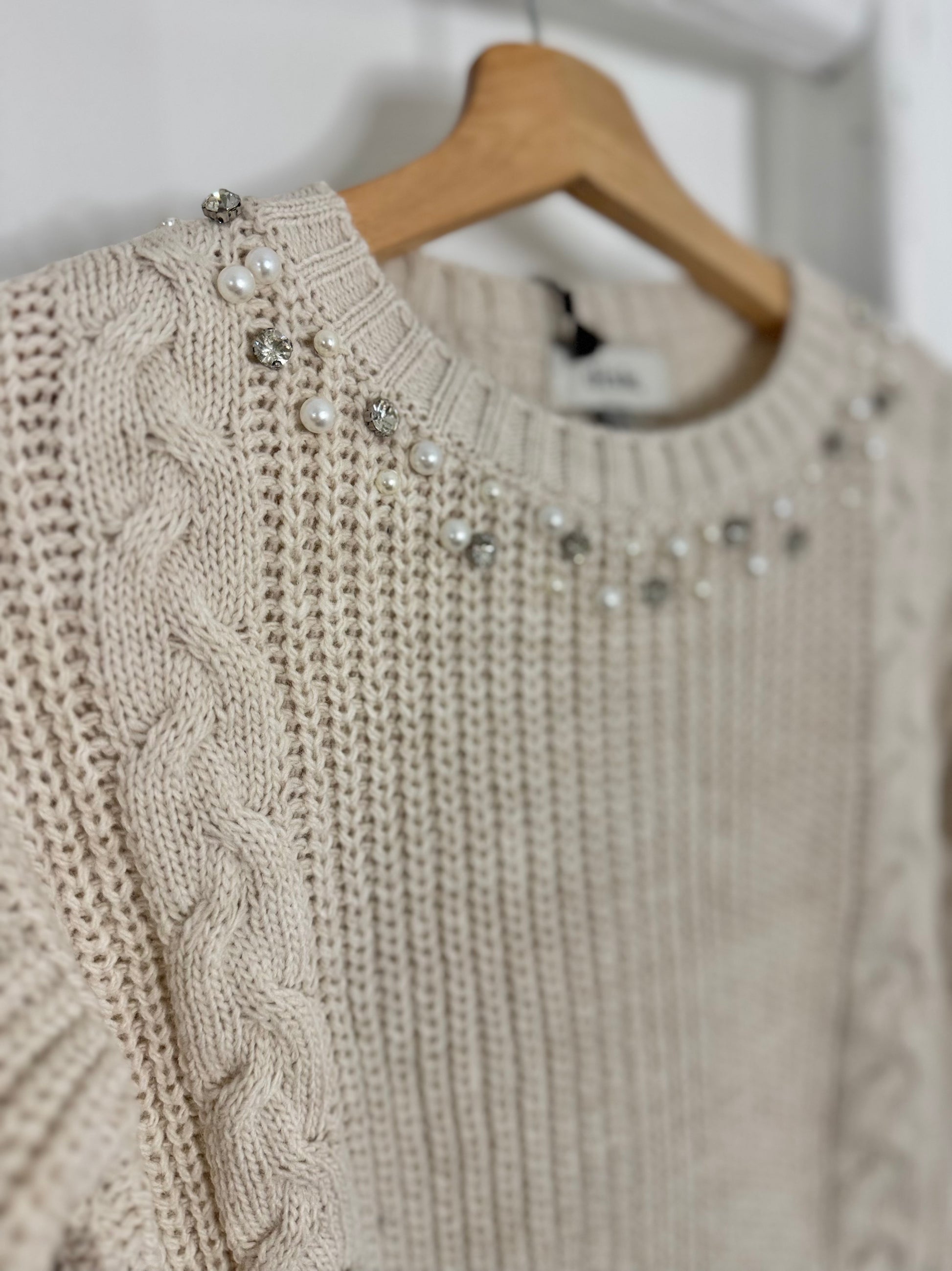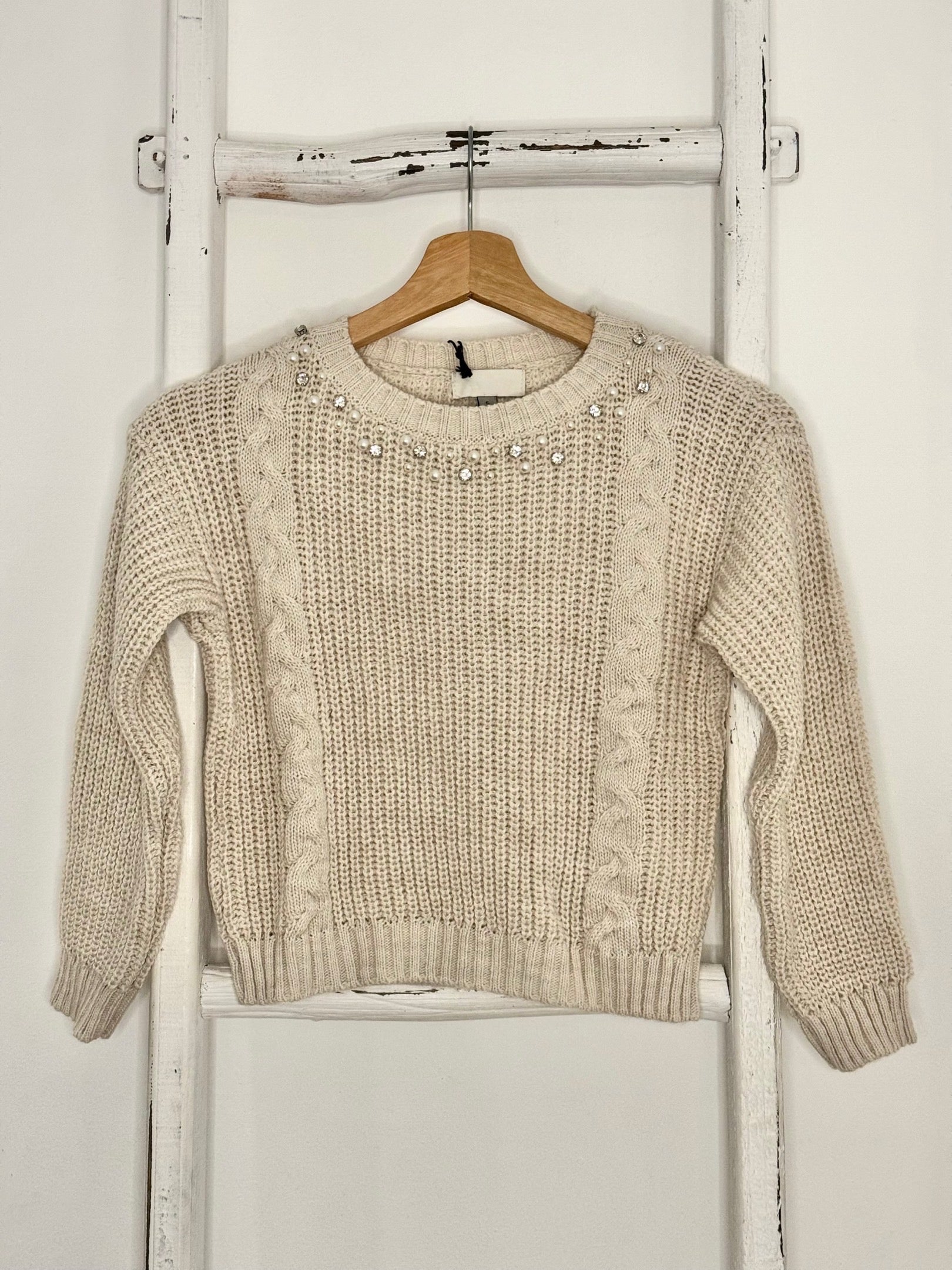 Rhinestones & Pearl Beige Sweater
